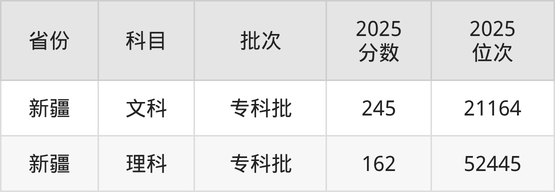 理科最低分对应地区为新疆,录取位次为52445,超专科线22分。