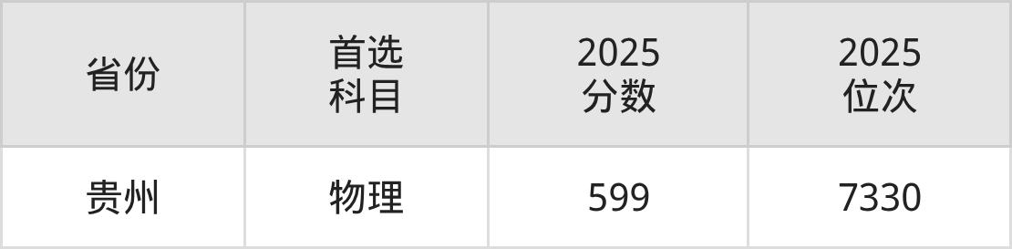 物理类最低分对应地区为贵州,录取位次为7330,超本科线212分。