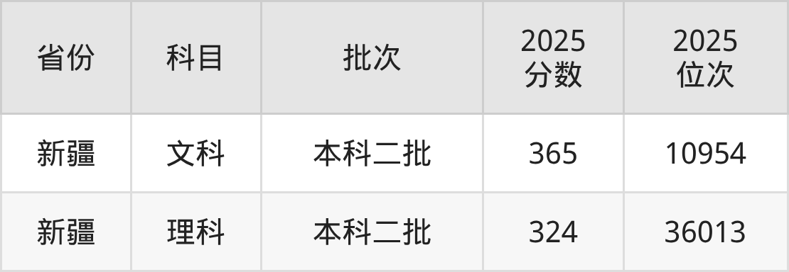 本科二批:文科408分、14493名,理科342分、56992名;
