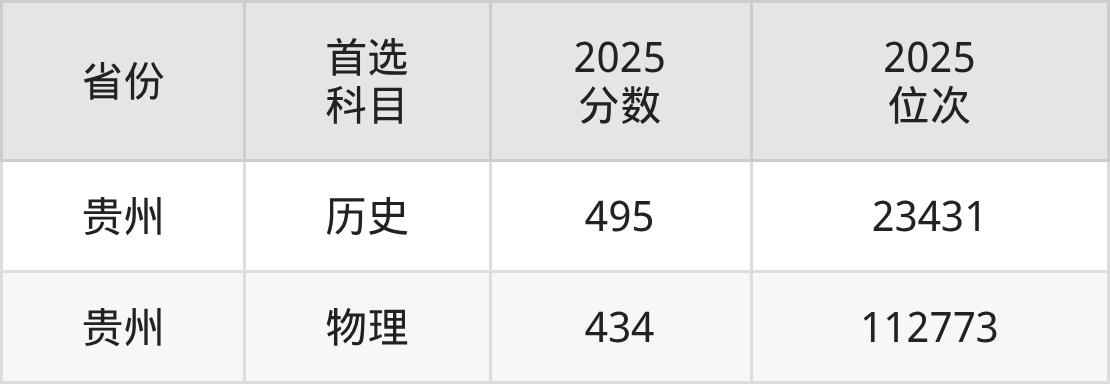 历史类最低分对应地区为贵州,录取位次为23431,超本科线37分。