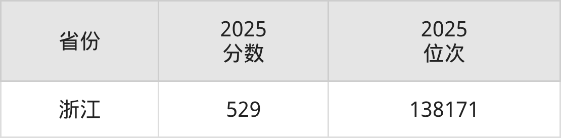最低分对应地区为浙江,录取位次为138171,超一段线39分。