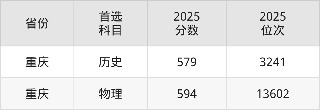物理类最低分对应地区为重庆,录取位次为13602,超本科线169分。