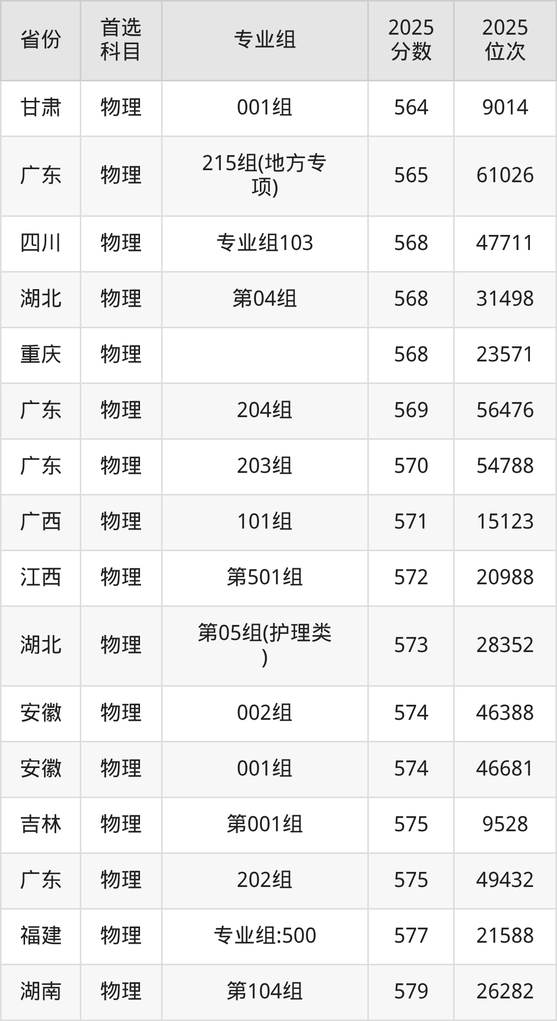 物理类:101组(地方免费医学生)580分、37280名,102组(地方免费医学生)597分、23715名,103组(地方免费医学生)569分、48392名,104组(地方免费医学生)576分、41486名,105组(地方免费医学生)559分、59424名,106组(地方免费医学生)563分、54236名,107组(地方免费医学生)562分、55299名,108组(地方免费医学生)558分、60265名,109组(地方免费医学生)562分、56147名,110组(地方免费医学生)567分、50704名,111组(地方免费医学生)575分、42408名,112组(地方免费医学生)565分、52001名,113组(地方免费医学生)584分、33754名,114组(地方免费医学生)584分、33555名,115组(地方免费医学生)583分、34971名,116组(地方免费医学生)560分、58743名,117组(地方免费医学生)569分、47780名,118组(地方免费医学生)560分、57620名,119组(地方免费医学生)565分、52595名,120组(地方免费医学生)562分、55325名,121组(地方免费医学生)596分、24503名,122组(地方免费医学生)574分、42747名,123组(地方免费医学生)564分、53182名,124组(地方免费医学生)581分、36334名,125组(地方免费医学生)575分、42671名,126组(地方免费医学生)572分、45430名,127组(地方免费医学生)566分、51410名,128组(地方免费医学生)559分、59383名,129组(地方免费医学生)593分、26549名,130组(地方免费医学生)566分、50834名,131组(地方免费医学生)558分、60228名,132组(地方免费医学生)568分、49425名,133组(地方免费医学生)569分、48568名,134组(地方免费医学生)573分、43744名,135组(地方免费医学生)551分、68591名,136组(地方免费医学生)548分、73134名,137组(地方免费医学生)551分、69547名,138组(地方免费医学生)545分、77233名,139组(地方免费医学生)533分、94730名,140组(地方免费医学生)561分、57035名,141组(地方免费医学生)558分、60895名,142组(地方免费医学生)582分、35186名,143组(地方免费医学生)570分、47544名,144组(地方免费医学生)571分、46566名,145组(地方免费医学生)573分、44401名,146组(地方免费医学生)559分、59743名,147组(地方免费医学生)567分、50157名,148组(地方免费医学生)555分、64629名,149组(地方免费医学生)560分、57743名,150组(地方免费医学生)567分、50679名,151组(地方免费医学生)557分、61234名,152组(地方免费医学生)561分、57124名,153组(地方免费医学生)556分、63113名,154组(地方免费医学生)554分、65719名,155组(地方免费医学生)572分、45463名,156组(地方免费医学生)574分、43136名,157组(地方免费医学生)569分、48181名,201组603分、19907名,202组559分、59522名,203组564分、53284名,204组547分、74220名,205组549分、71740名,206组548分、72683名,207组547分、74202名,210组(地方专项)559分、59606名,211组(地方专项)540分、83738名,212组(地方专项)542分、80992名;