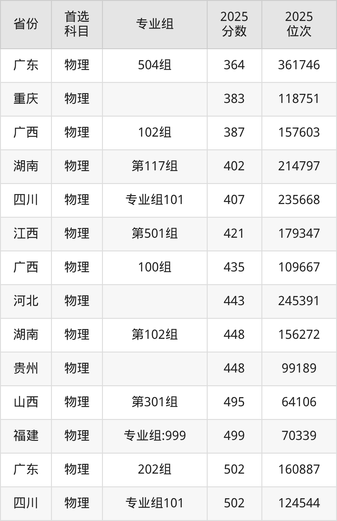 物理类:第102组466分、131483名,第119组403分、212254名;
