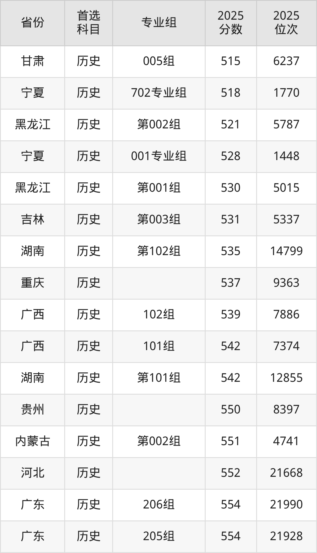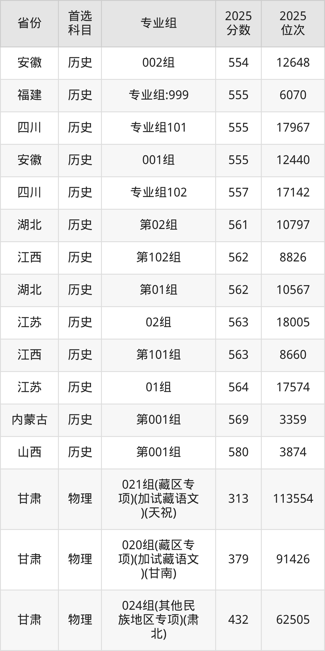 为了方便各地区考生们查看甘肃政法大学的录取情况,本文也整理出2025年甘肃政法大学在全国各省的录取分数线,供参考。