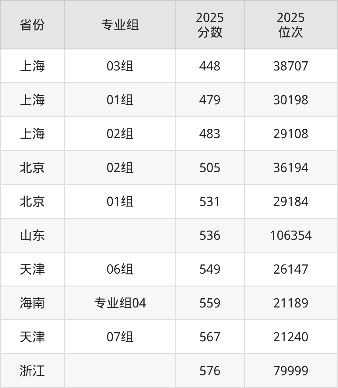 最低分对应地区为上海(03组),录取位次为38707,超本科线46分;最高分对应地区为浙江,录取位次为79999,超一段线86分。