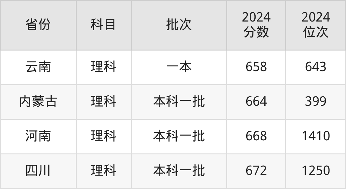 理科最低分对应地区为青海,录取位次为111,超一本线270分;最高分对应地区为四川,录取位次为1250,超一本线133分。