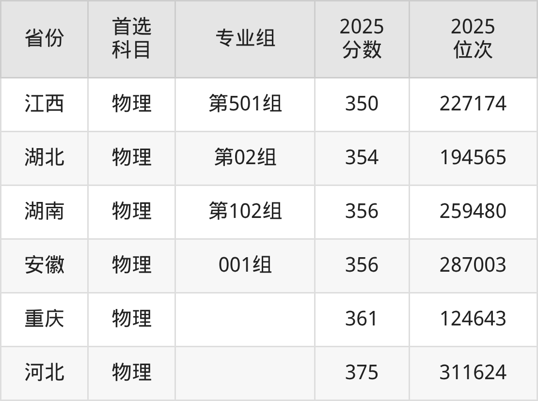 物理类最低分对应地区为贵州,录取位次为203914,超专科线66分;最高分对应地区为河北,录取位次为311624,超专科线175分。