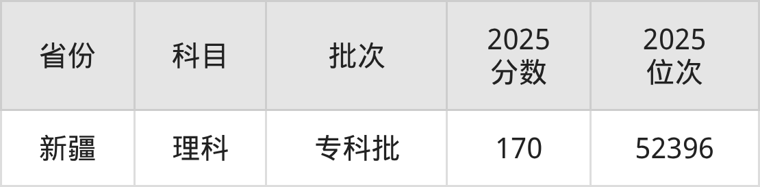 理科最低分对应地区为新疆,录取位次为52396。