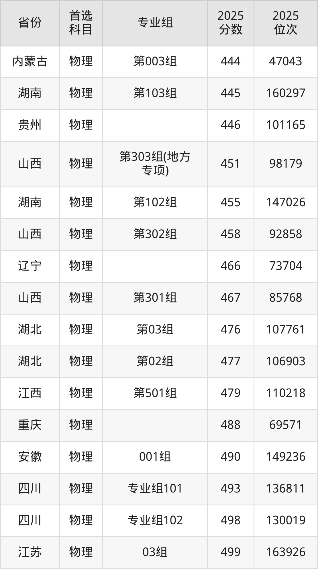 物理类:第301组467分、85768名,第302组458分、92858名,第303组(地方专项)451分、98179名;