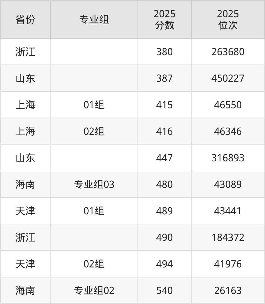 最低分对应地区为浙江,录取位次为263680,超二段线112分;最高分对应地区为海南(专业组02),录取位次为26163。