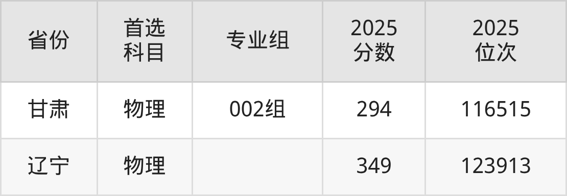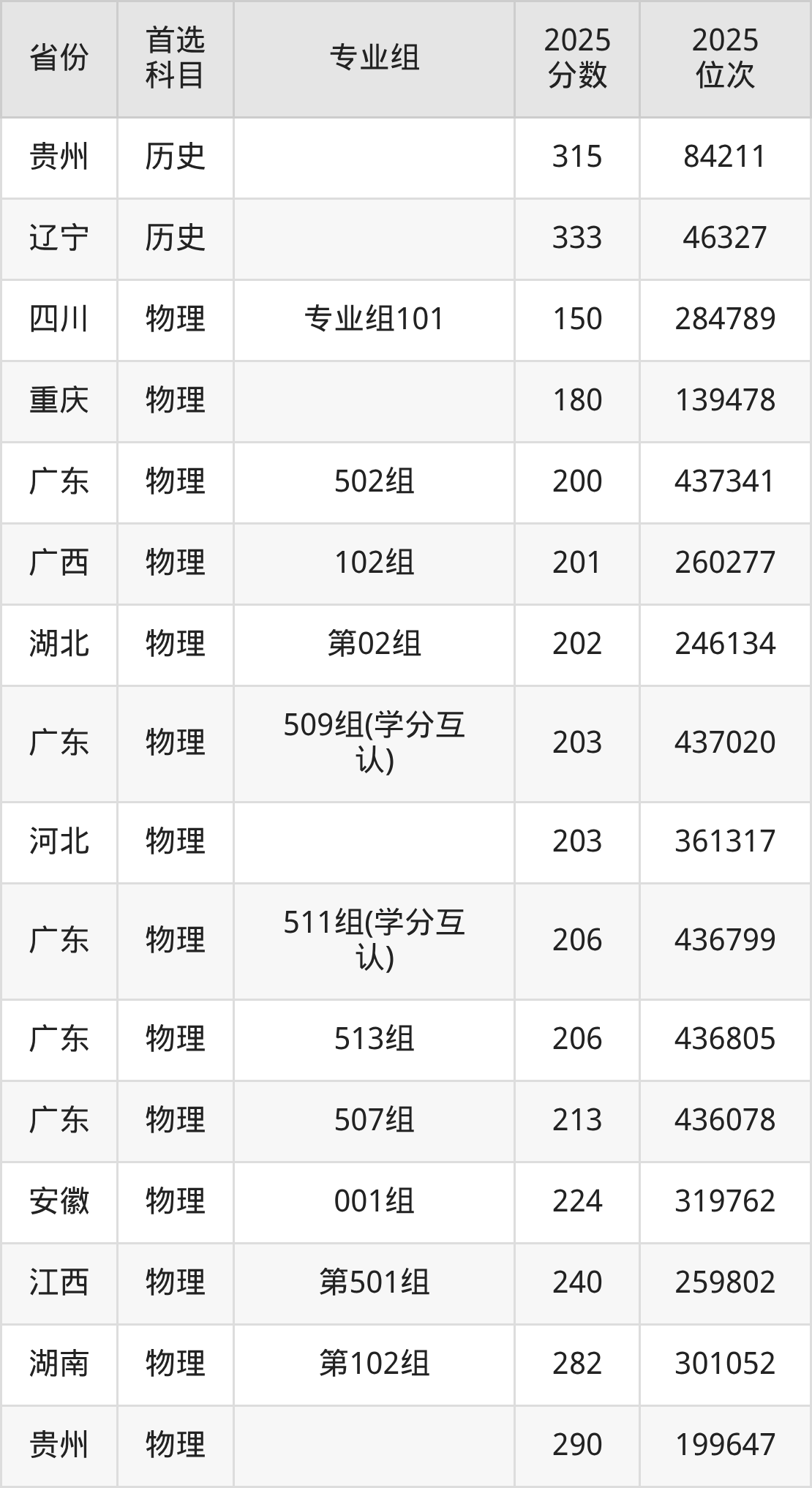 物理类:502组285分、422846名,507组(学分互认)273分、429136名,511组(学分互认)241分、441997名;