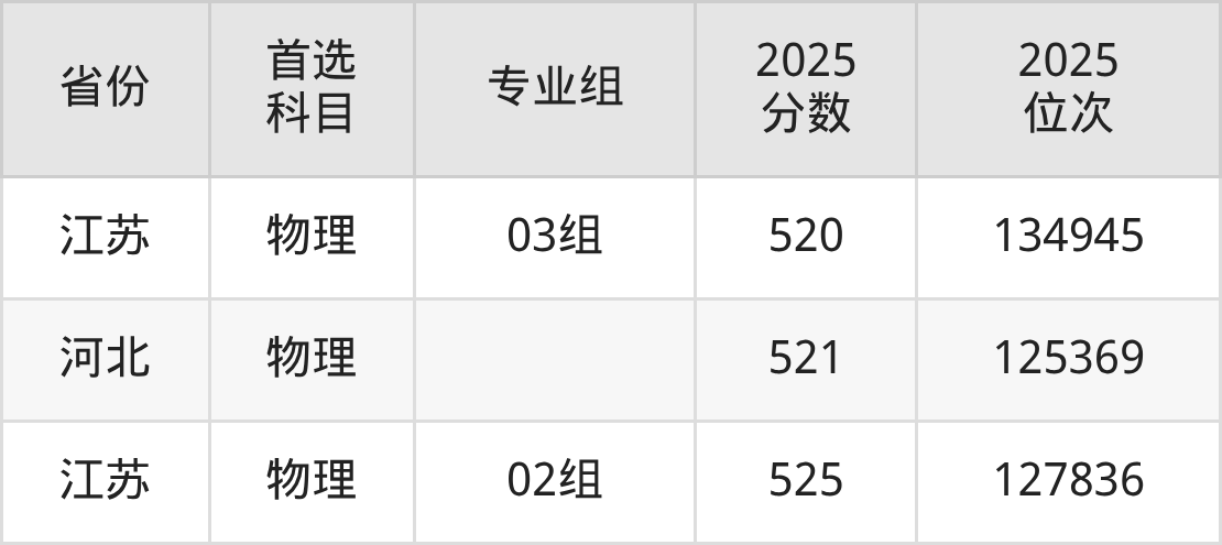 物理类最低分对应地区为广西(103组),录取位次为142408,超本科线32分;最高分对应地区为江苏(02组),录取位次为127836,超本科线62分。