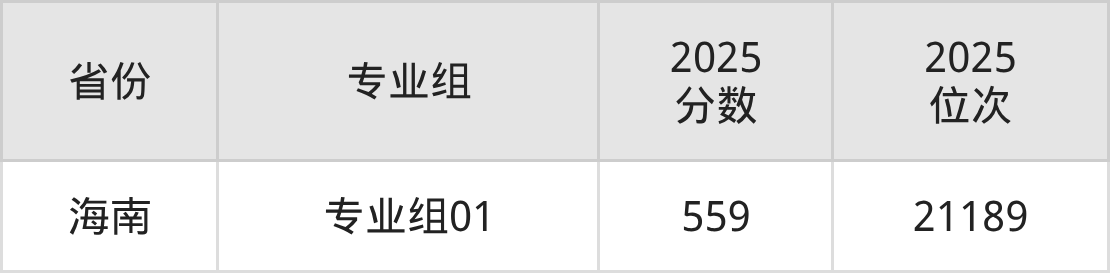 最低分对应地区为海南(专业组01),录取位次为21189,超本科线79分。