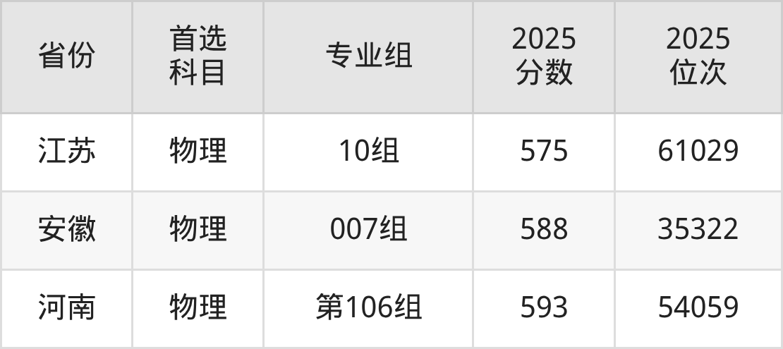 物理类最低分对应地区为宁夏(002专业组),录取位次为15352,超本科B73分;最高分对应地区为河南(第106组),录取位次为54059,超本科线166分。