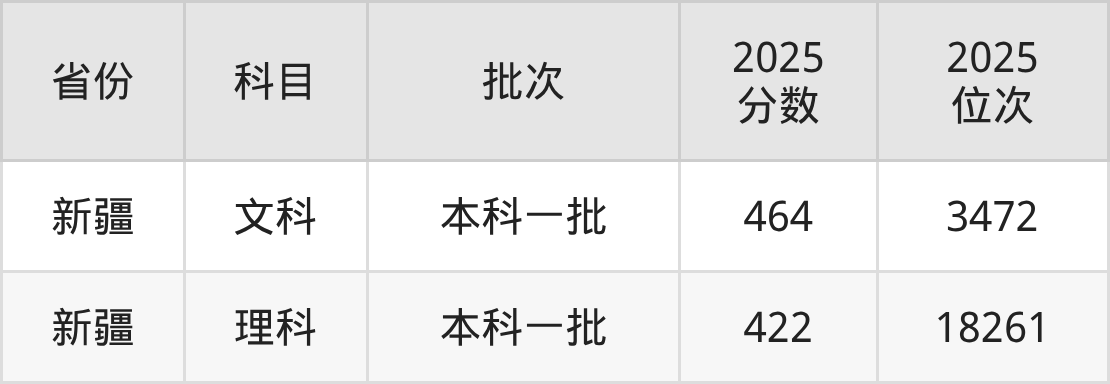 文科最低分对应地区为新疆,录取位次为3472,超一本线13分。