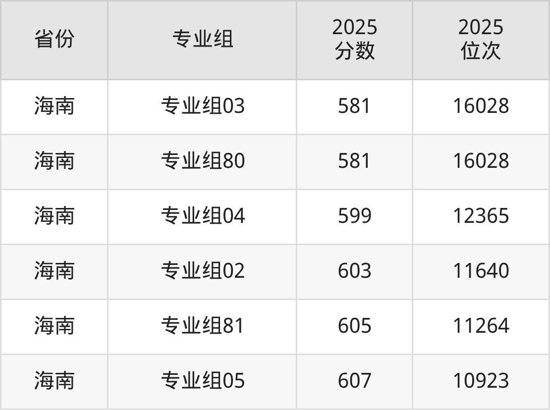 最低分对应地区为上海(02组),录取位次为31654,超本科线72分;最高分对应地区为海南(专业组05),录取位次为10923,超本科线127分。