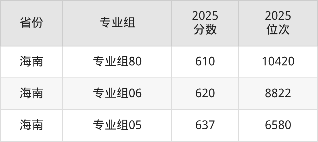最低分对应地区为上海(07组),录取位次为27375,超本科线87分;最高分对应地区为海南(专业组05),录取位次为6580,超本科线157分。