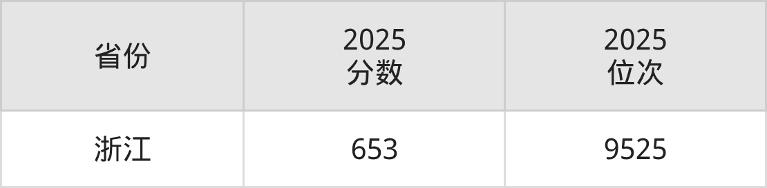 最低分对应地区为浙江,录取位次为9525,超一段线163分。