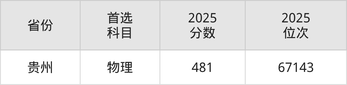 物理类最低分对应地区为贵州,录取位次为67143,超本科线94分。