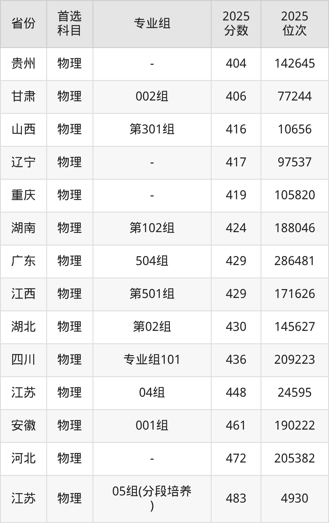 物理类:04组448分、24595名,05组(分段培养)483分、4930名;