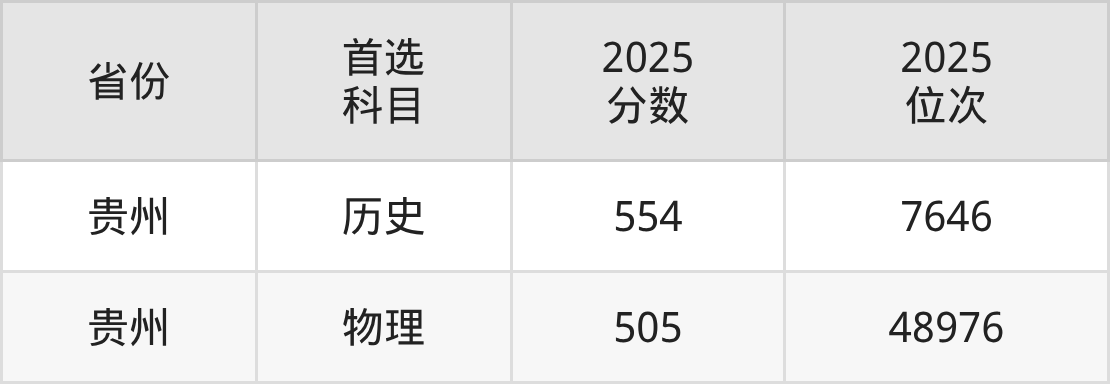 三、贵州大学(预科班)2025录取分数线