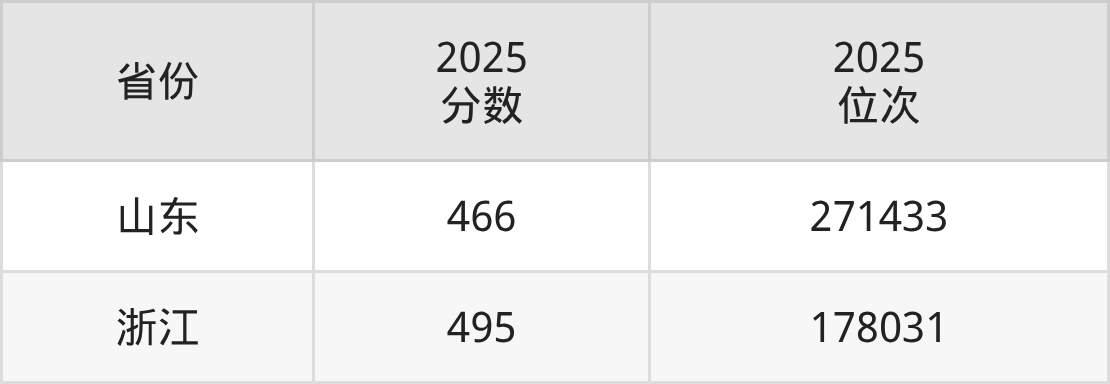 最低分对应地区为山东,录取位次为271433,超一段线37分;最高分对应地区为浙江,录取位次为178031,超一段线5分。