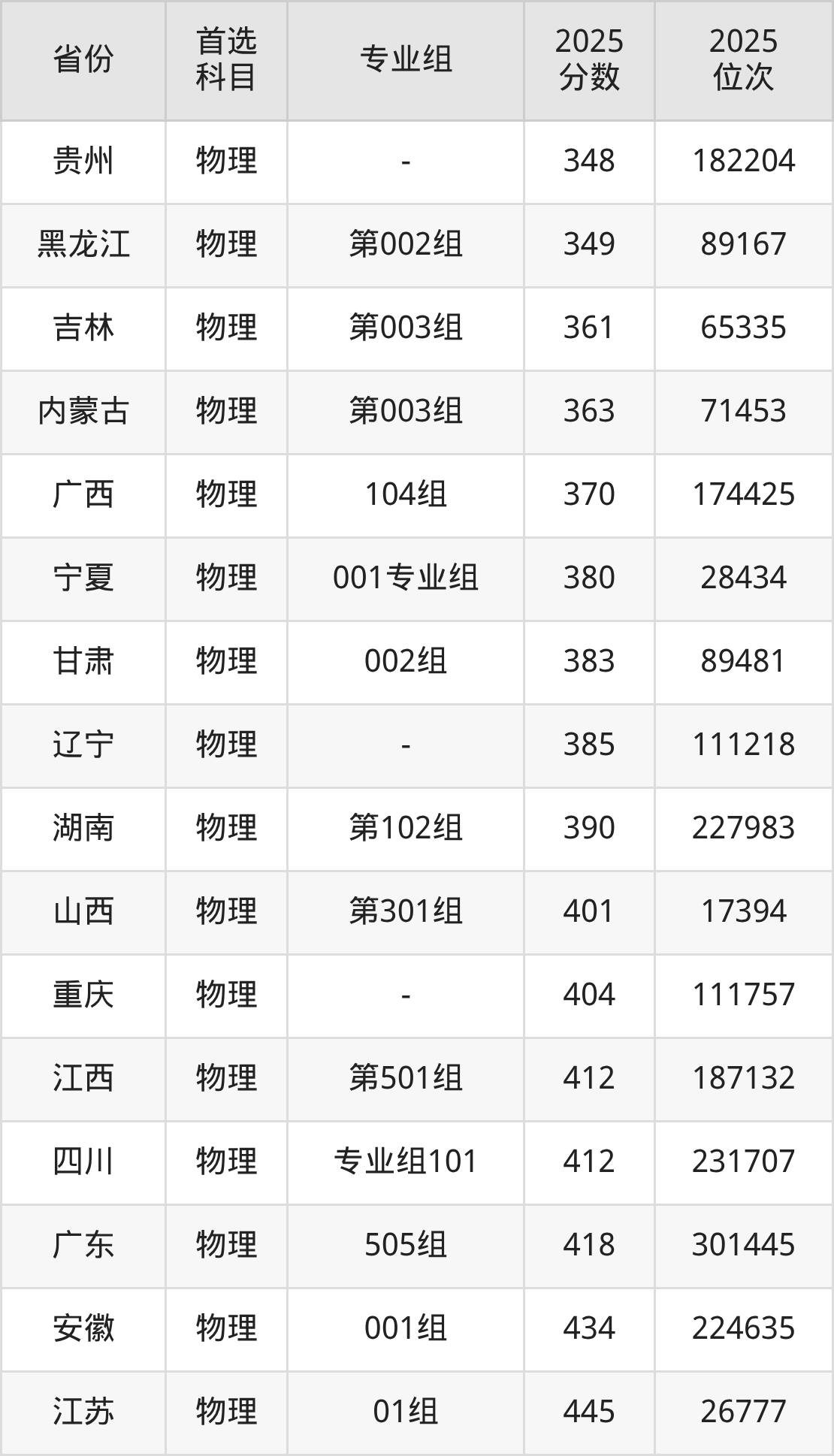 物理类:第301组401分、17394名;