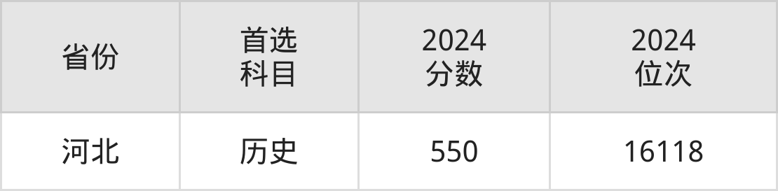 历史类最低分对应地区为河北,录取位次为16118,超本科线101分。