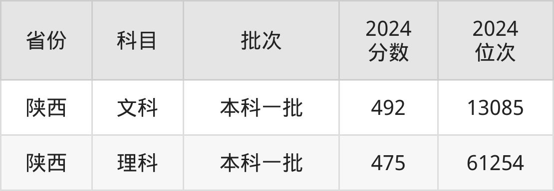 文科最低分对应地区为陕西,录取位次为13085,超一本线4分。