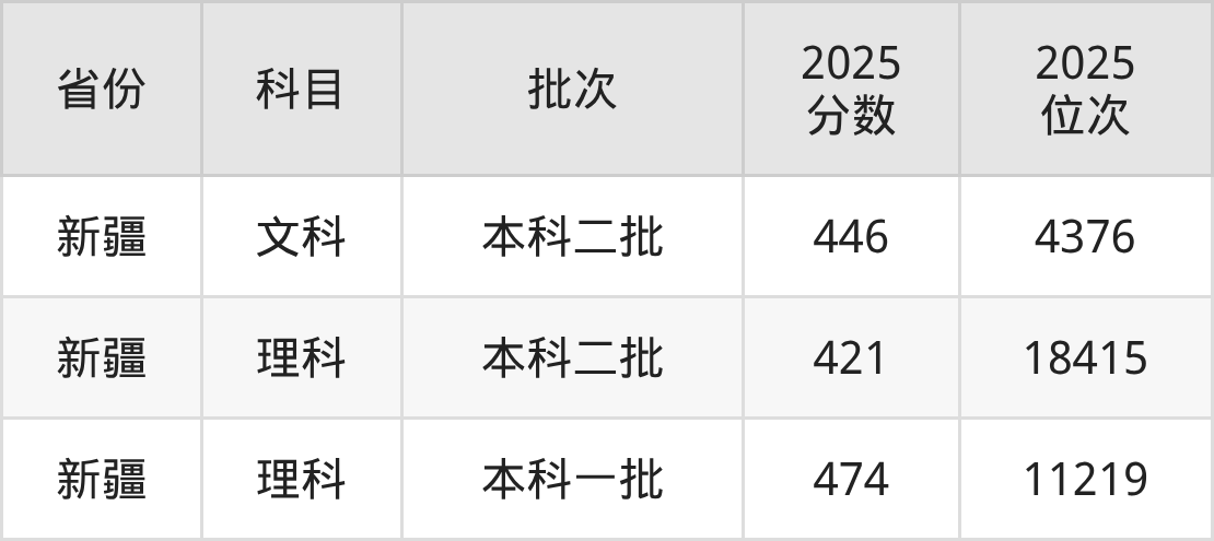 理科最低分对应地区为新疆,录取位次为18415,超二本线141分;最高分对应地区为新疆,录取位次为11219,超一本线53分。