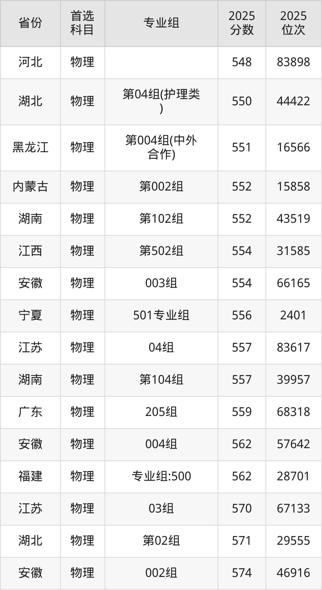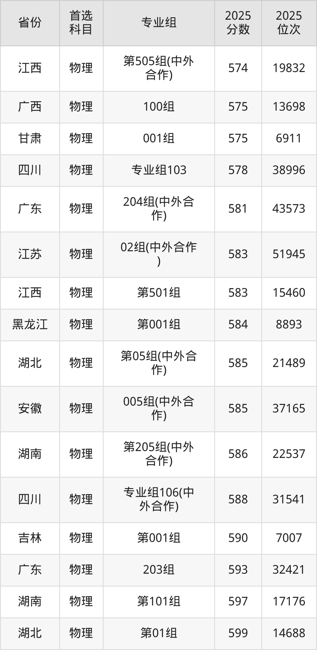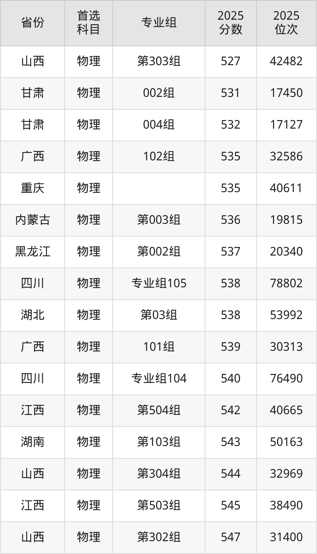 物理类:535分、40611名;