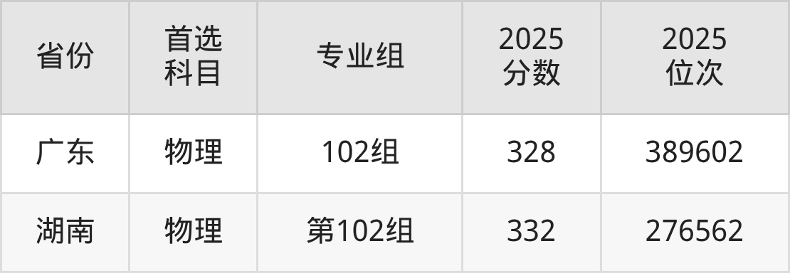 物理类最低分对应地区为广西(102组),录取位次为260115,超专科线3分;最高分对应地区为湖南(第102组),录取位次为276562,超专科线132分。