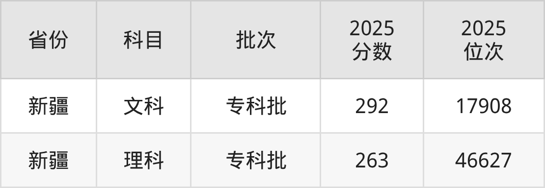 理科最低分对应地区为新疆,录取位次为46627,超专科线123分。