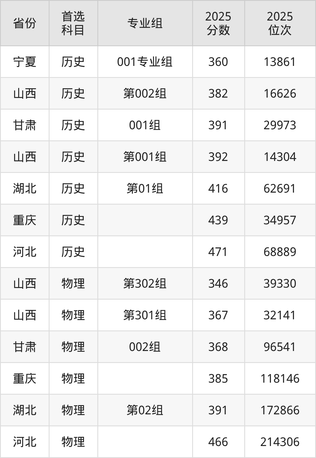 为了方便各地区考生们查看山西卫生健康职业学院的录取情况,本文也整理出2025年山西卫生健康职业学院在全国各省的录取分数线,供参考。