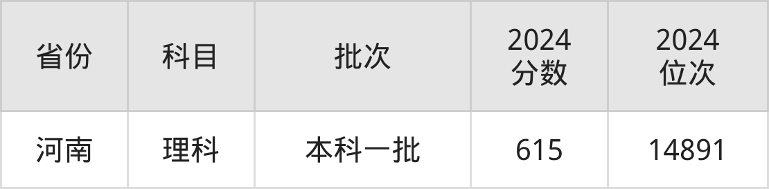 理科最低分对应地区为河南,录取位次为14891,超一本线104分。