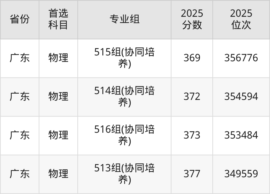 物理类:509组287分、413716名,510组263分、424467名,511组(校企联合培养)206分、436831名,512组(学分互认)206分、436819名,513组(协同培养)377分、349559名,514组(协同培养)372分、354594名,515组(协同培养)369分、356776名,516组(协同培养)373分、353484名;
