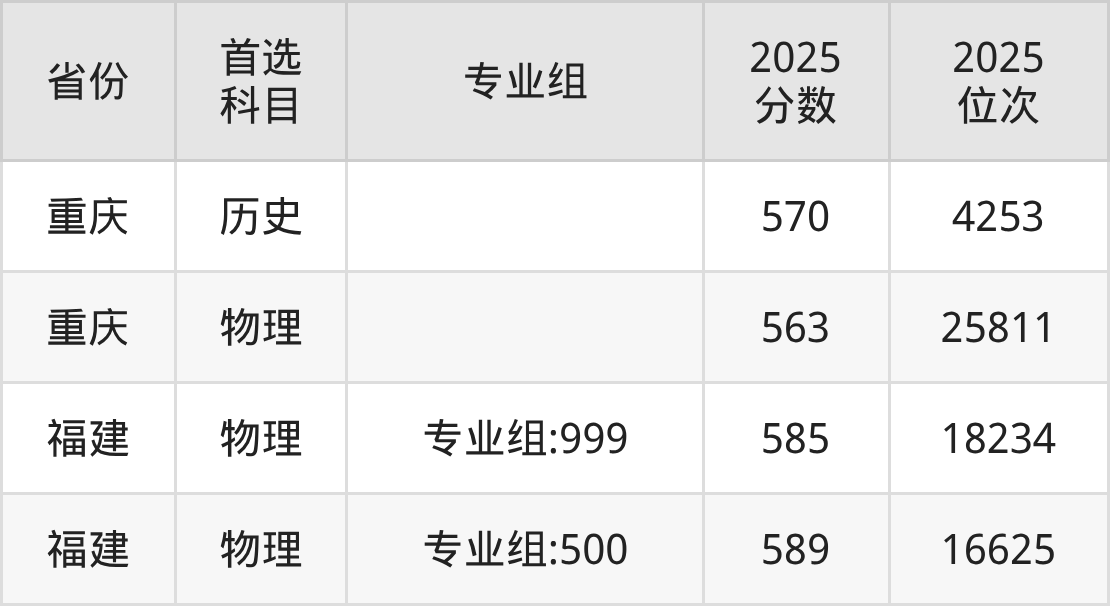 历史类最低分对应地区为重庆,录取位次为4253,超本科线132分。