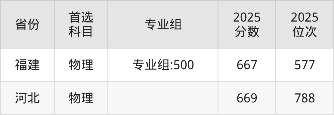 物理类最低分对应地区为福建(专业组:500),录取位次为577,超本科线226分;最高分对应地区为河北,录取位次为788。