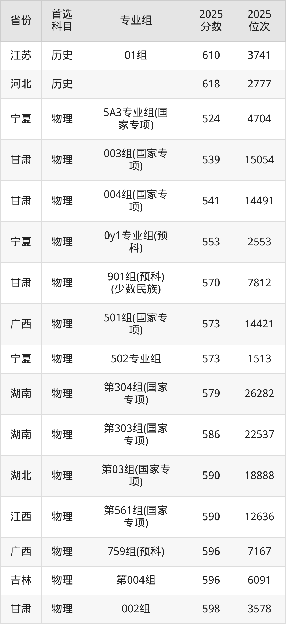 南京理工大学在江苏省录取分数线为:历史类610分、物理类607分;在全国各省的最低录取分数线为524分,招生地区为宁夏,也就是说本科考生最低524分能上南京理工大学。以上分数均来自2025年录取数据,供2026年考生参考。