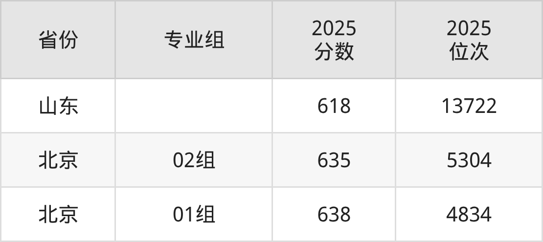 最低分对应地区为山东,录取位次为13722,超一段线184分;最高分对应地区为北京(01组),录取位次为4834,超本科线208分。