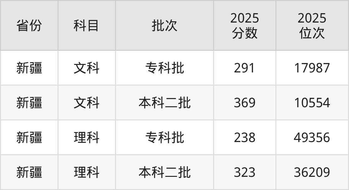 为了方便各地区考生们查看新疆农业职业技术大学的录取情况,本文也整理出2025年新疆农业职业技术大学在全国各省的录取分数线,供参考。