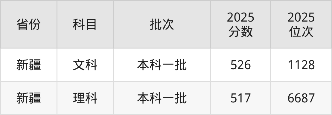 理科最低分对应地区为新疆,录取位次为6687,超一本线96分。