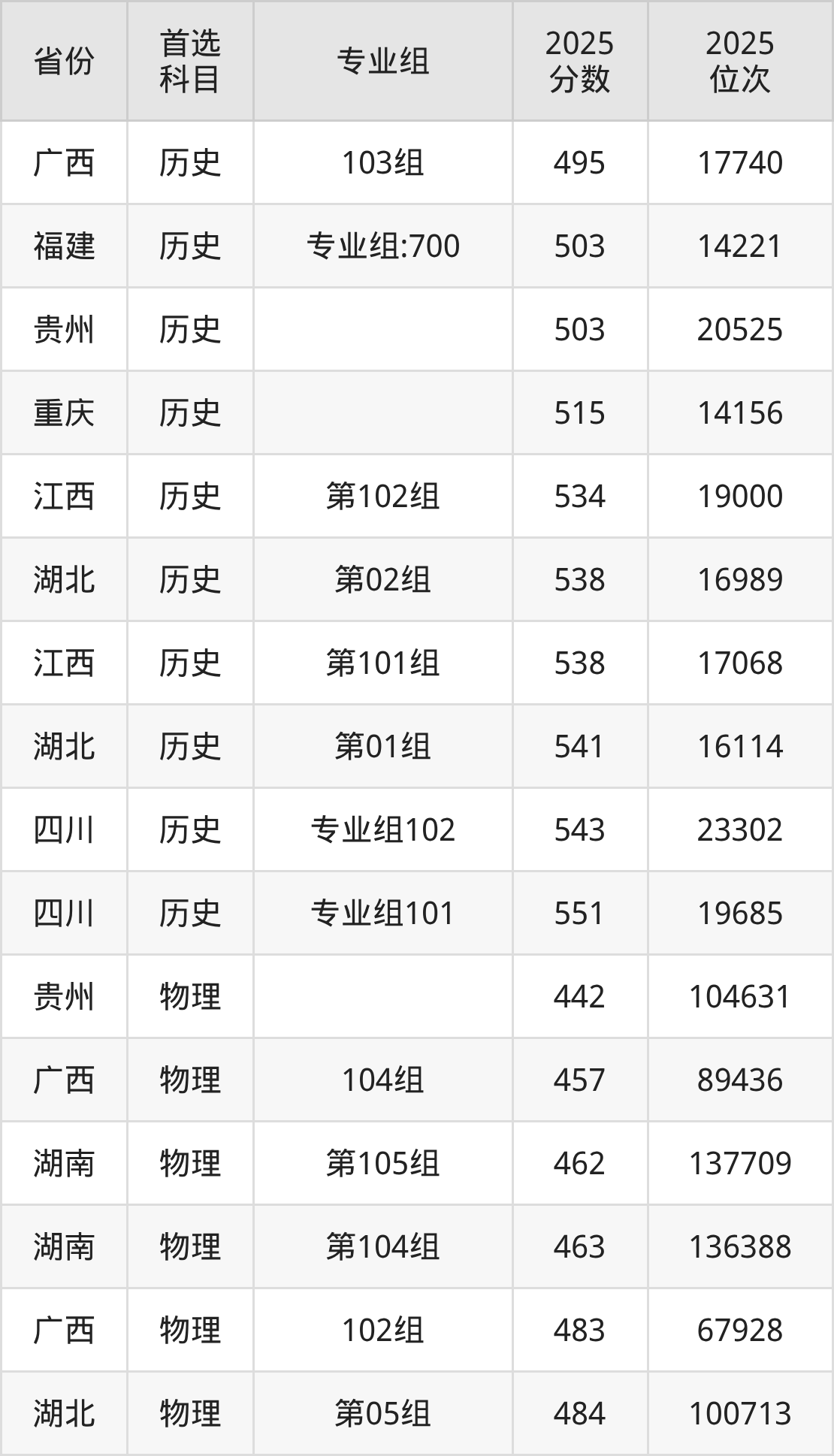 历史类:503分、20525名;
