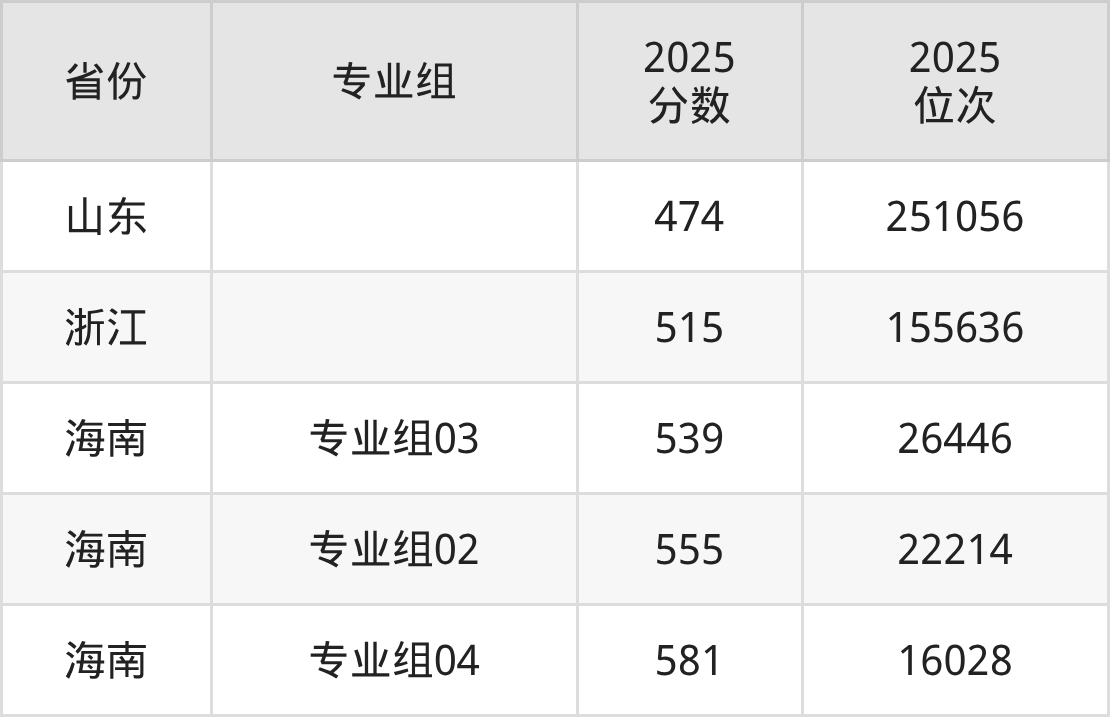 最低分对应地区为山东,录取位次为251056,超一段线71分;最高分对应地区为海南(专业组04),录取位次为16028,超本科线101分。