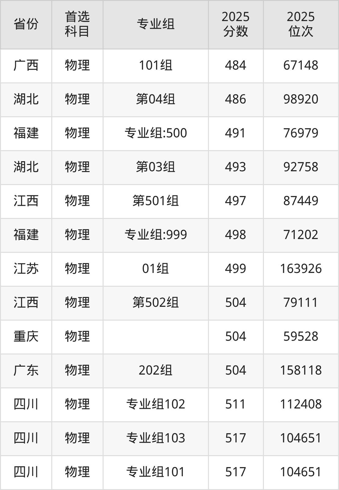 物理类:442分、104631名;