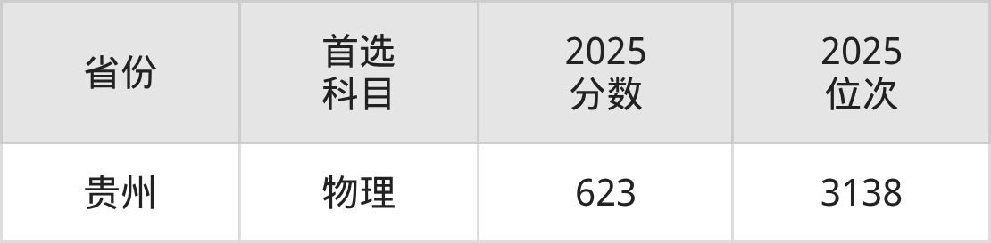 北京理工大学(国家专项计划)在贵州省录取分数线为:623分;在全国各省的最低录取分数线也为623分,也就是说本科考生最低623分能上北京理工大学(国家专项计划)。以上分数均来自2025年录取数据,供2026年考生参考。