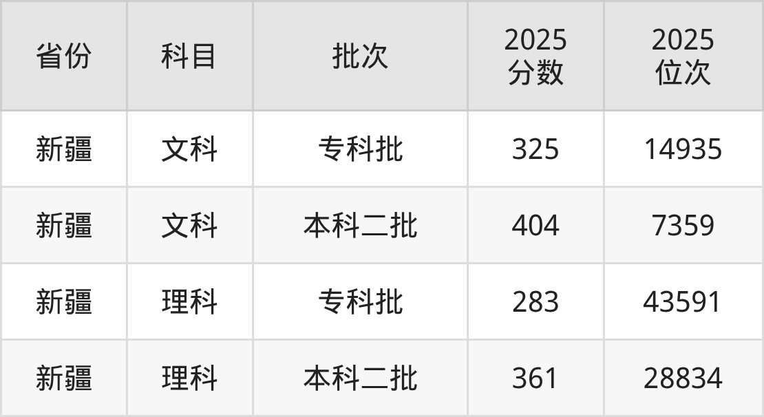 文科最低分对应地区为新疆,录取位次为14935,超专科线185分;最高分对应地区为新疆,录取位次为7359,超二本线74分。