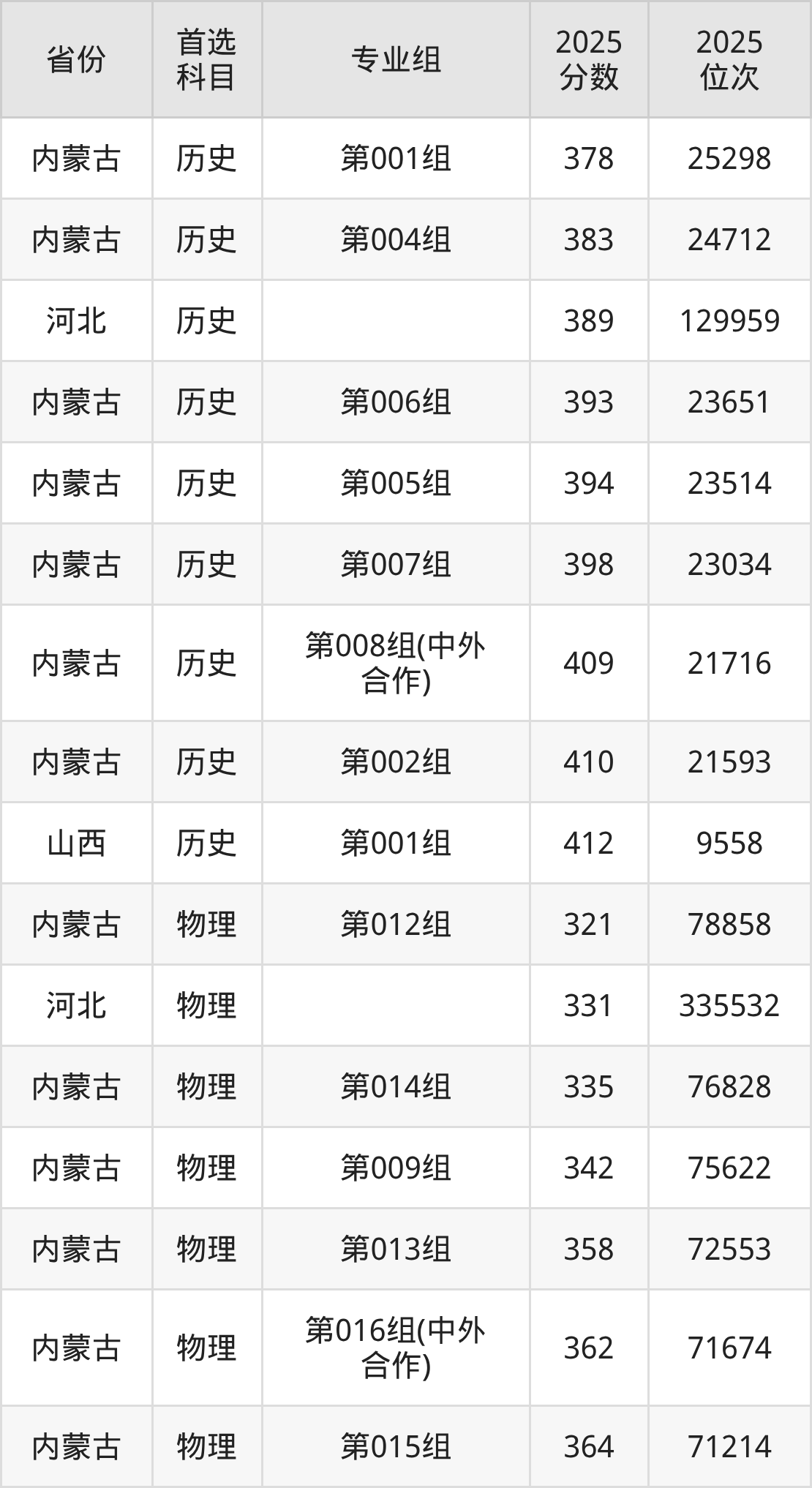 因为2026年的录取数据是录取结束后才会公布,因此2026年考生想知道多少分能上内蒙古商贸职业学院的话,只能参考近三年(2023年-2025年)的录取数据。