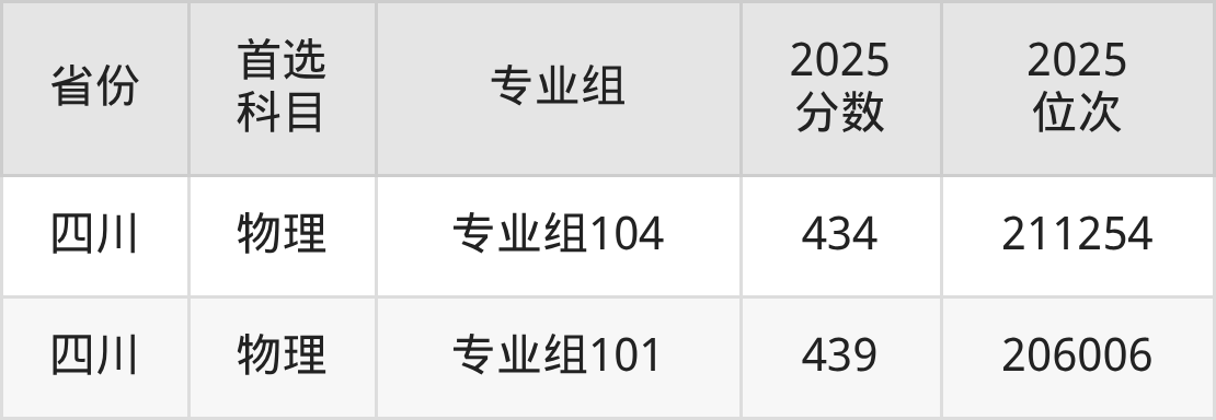 物理类:专业组101439分、206006名,专业组102428分、217374名,专业组103397分、242786名,专业组104434分、211254名,专业组105406分、236406名;